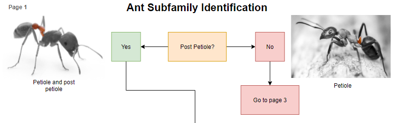 Once this is complete I will add ways of narrowing down by region but for now It will be one big guide because I want to learn (And teach) as much as I possibly can about ant identification. So far the guide only covers Sub-families which, honestly, was hard enough. There were under 2 dozen subfamilies and it took forever. There are over 500 genera and over 14,000 species as of writing. Not to mention the fact that the differences between ants becomes smaller and harder to identify the more specific you go. For now, subfamilies will have to do.