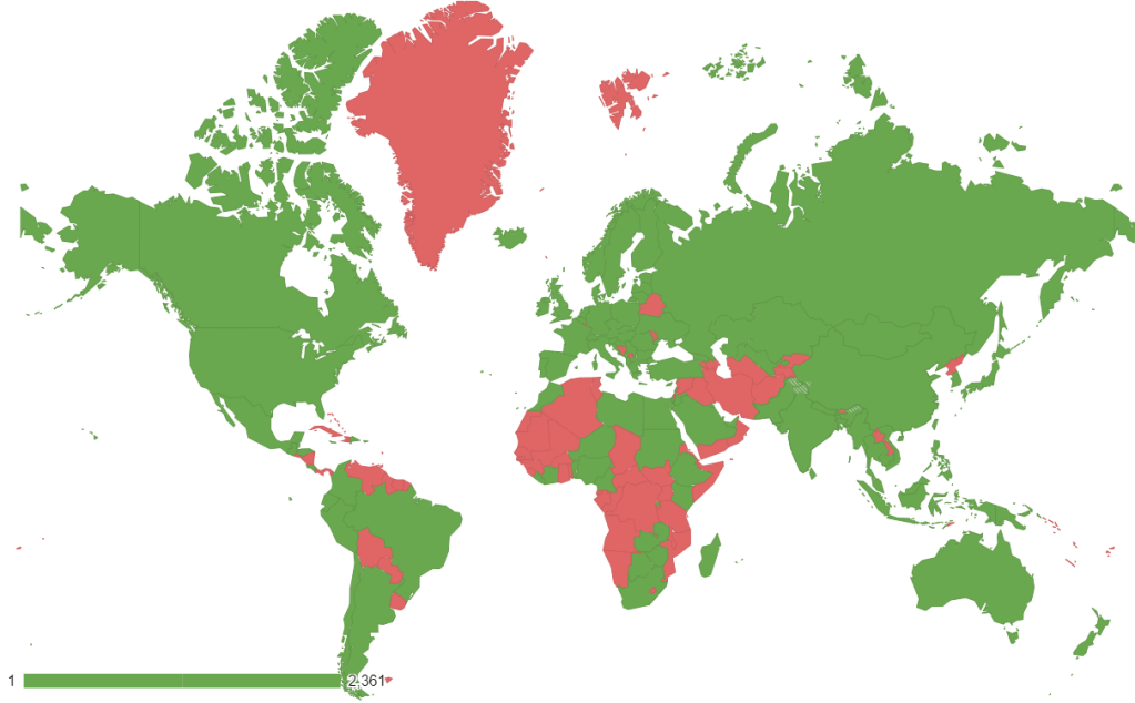 First of all, these are all of the political entities that have viewed the site! Green means someone located there has read the site and red means they have not. The list treats entities as separate states. For example, Greenland is a part of the Danish realm but is treated as it’s own country on this list. If you happen to know someone from any of the red regions please tell them about the site! I am treating them like Pokémon and want to collect them all. I want all of this map to be green! I can see a certain country maybe not viewing my site but I will try, damn it!